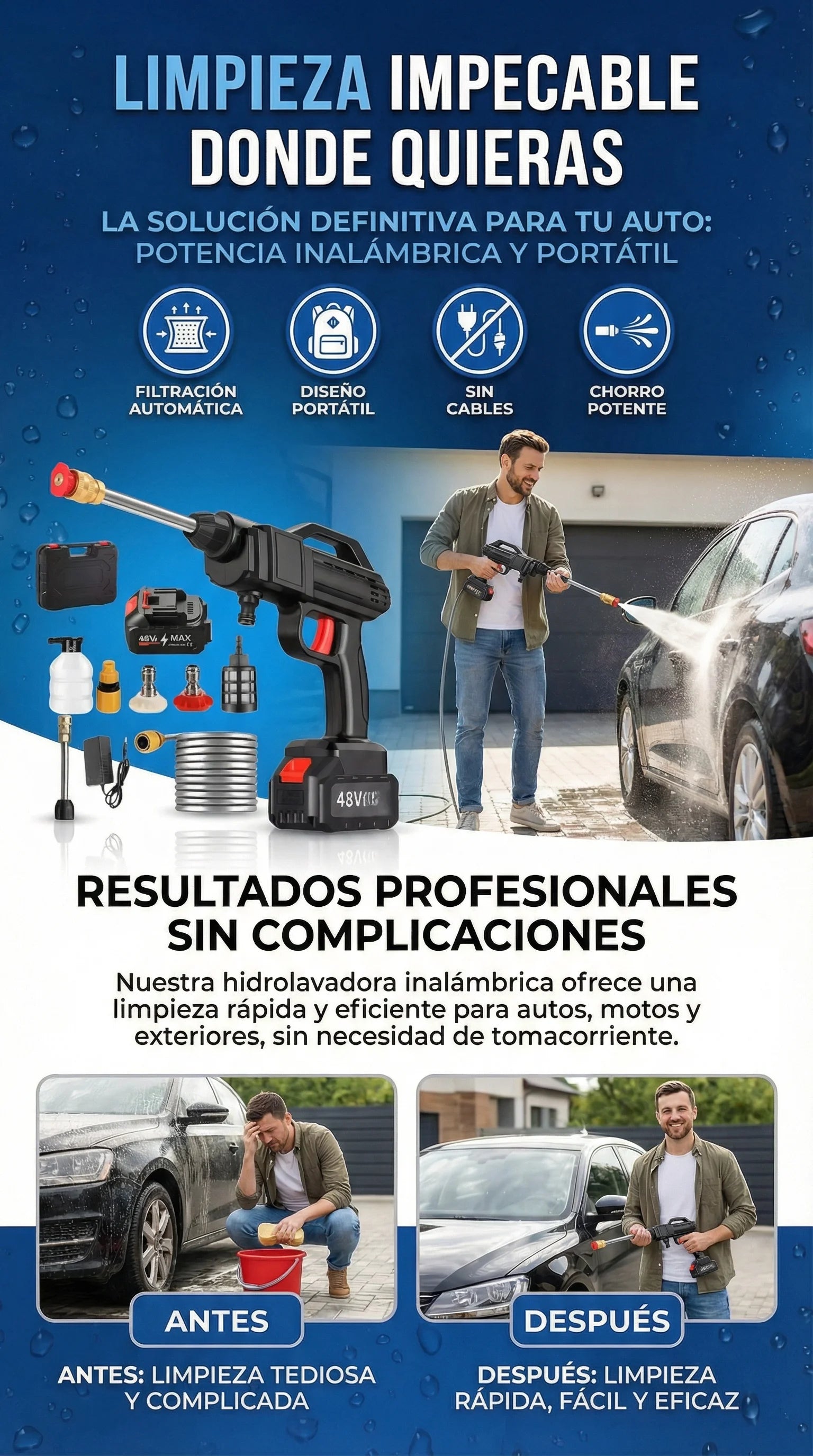 HidroClean Pro® Pistola Hidro lavadora Inalámbrica